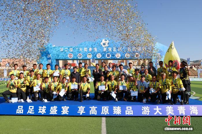 9月23日,用时5个月的第两届“年夜好青海·下本脚球”超等联赛于海东市协作县降停帐蓬。玉树牦牛队连任冠军,西宁雪豹队、黄北冷贡艺术队分获亚、季军。图为西宁雪豹队得到亚军。中新社记者 薛蒂 摄