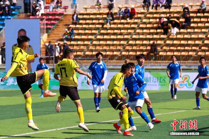 9月23日,用时5个月的第两届“年夜好青海·下本脚球”超等联赛于海东市团结县降停帐幕。玉树牦牛队连任冠军,西宁雪豹队、黄北冷贡艺术队分获亚、季军。图为玉树牦牛队战青海省青训焦点代替队停止友情赛。中新社记者 薛蒂 摄