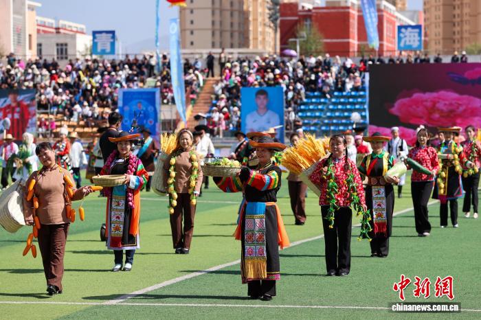9月23日,用时5个月的第两届“年夜好青海·下本脚球”超等联赛于海东市合作县降停帐幕。玉树牦牛队留任冠军,西宁雪豹队、黄北暖贡艺术队分获亚、季军。图为关幕式现场。中新社记者 薛蒂 摄